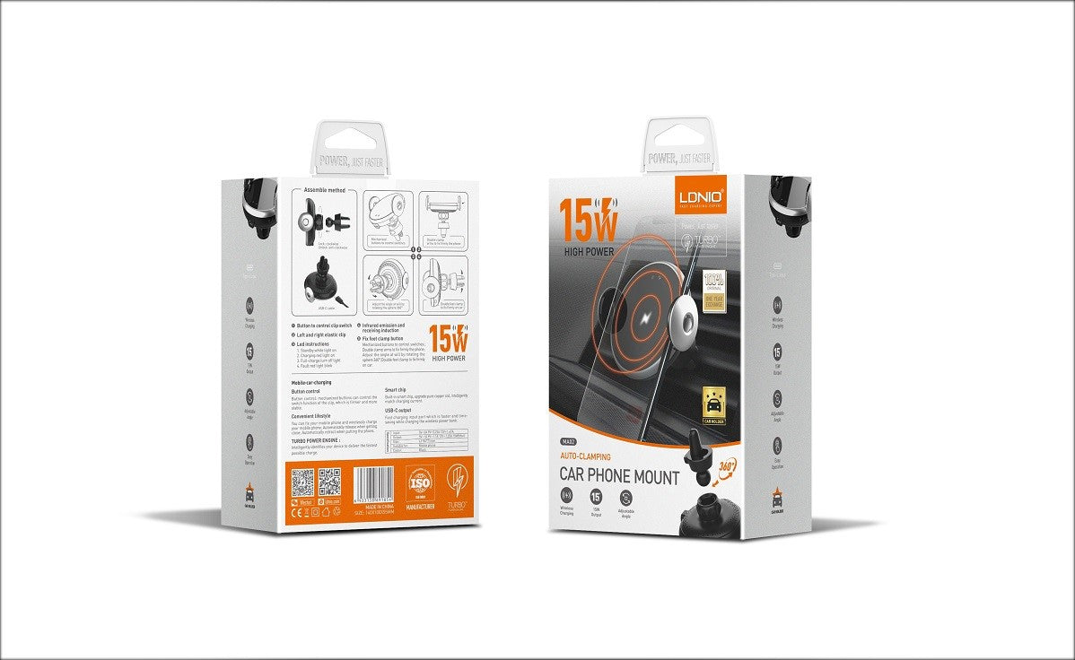 LDNIO 15W MA02 Adjustable Car Wireless Car Holder for Mobile Phone Wireless Charging Type-c Car Wireless Charger stand